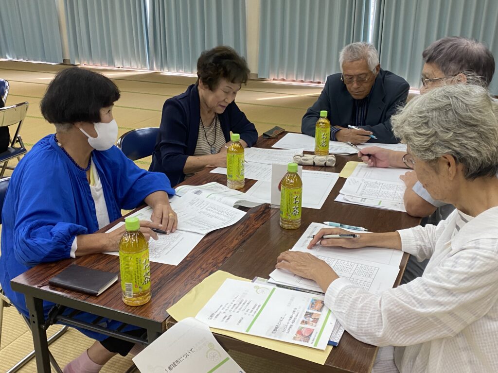 10月2日(木)に大分県日田市民生委員児童委員協議会と都城市民生委員児童委員協議会にて視察交流意見交換会を実施しました。前半は日田市、都城市の取り組みについて説明を行い、後半では6グループに分かれて意見交換を行いました。