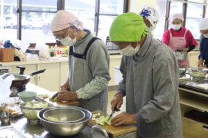 料理教室には、食生活改善推進員にもお越しいただき、料理の作り方や栄養分について説明をしていただいております。