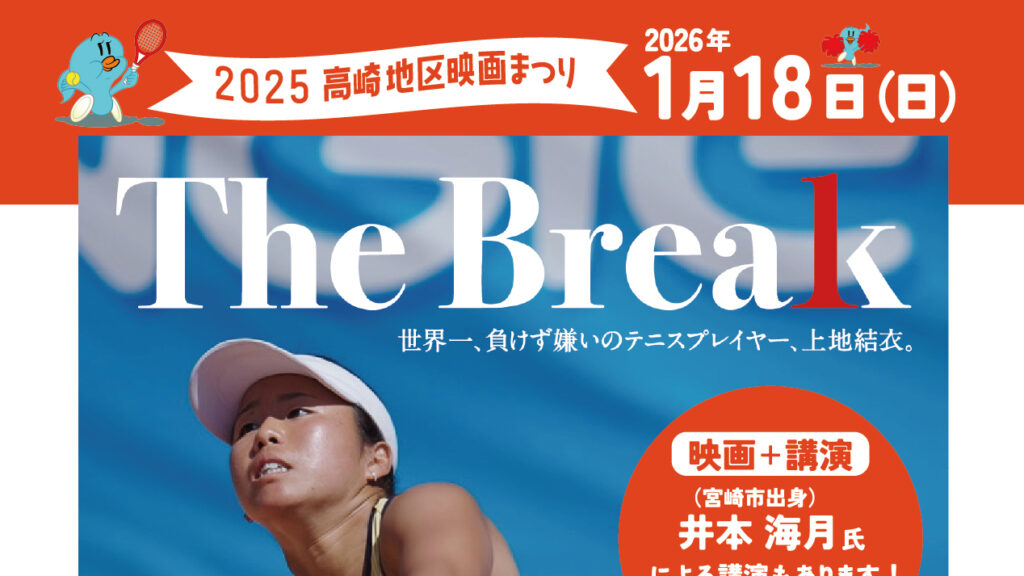 【高崎】令和8年1月18日(日)開催! 高崎地区映画まつり『The Break 世界一、負けず嫌いのテニスプレイヤー、上地結衣。』