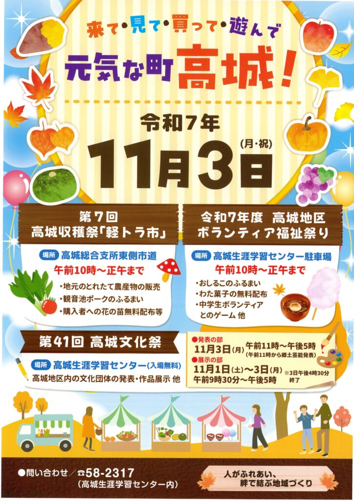 2025年11月3日(月・文化の日)に令和7年度 高城地区ボランティア福祉祭りが開催されます!ぜひお越しください!