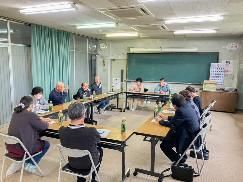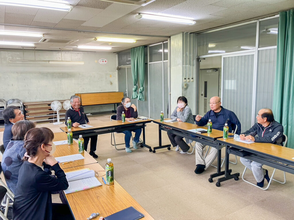 今回は高齢者の生きがいづくりをテーマに意見交換会をしました。各自治公民館長、民生委員より現状について報告してもらい意見交換しました。