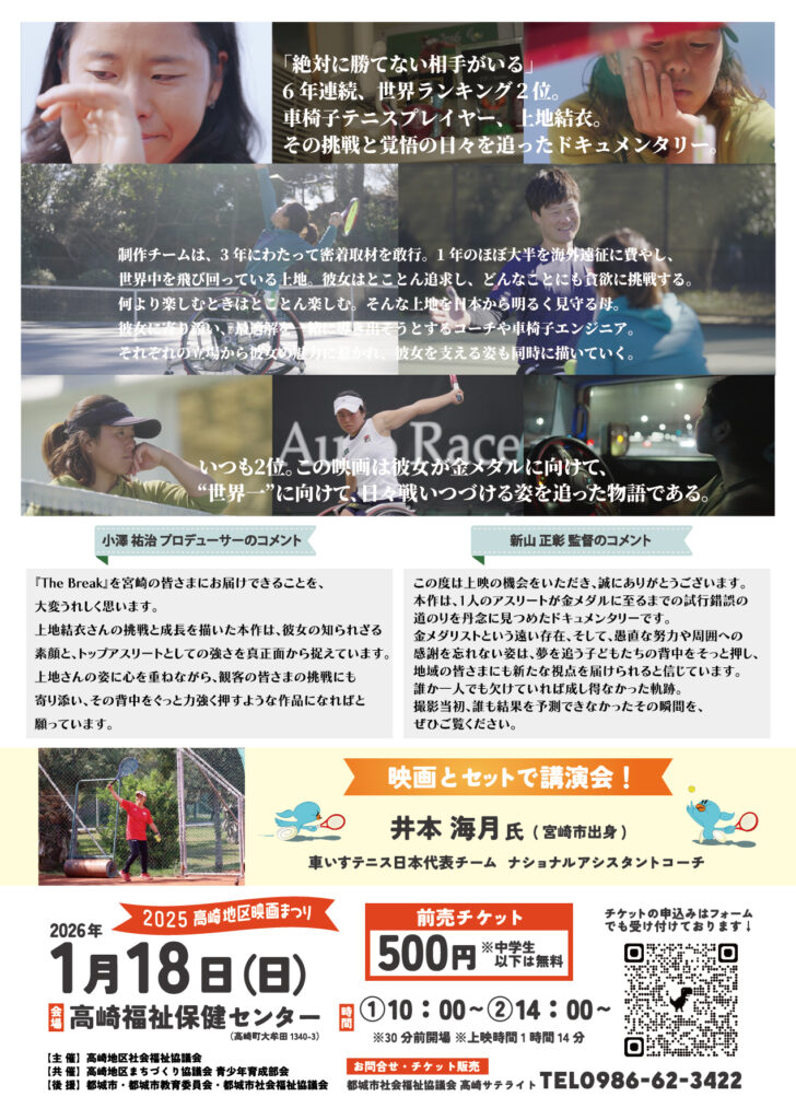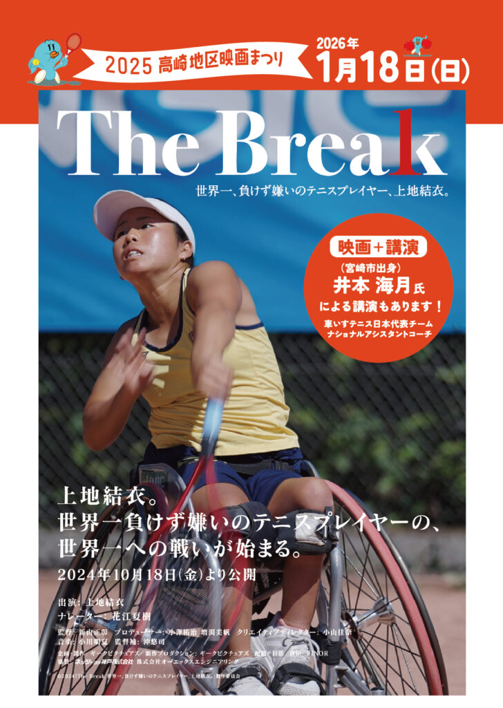 【高崎】令和8年1月18日(日)開催! 高崎地区映画まつり『The Break 世界一、負けず嫌いのテニスプレイヤー、上地結衣。』