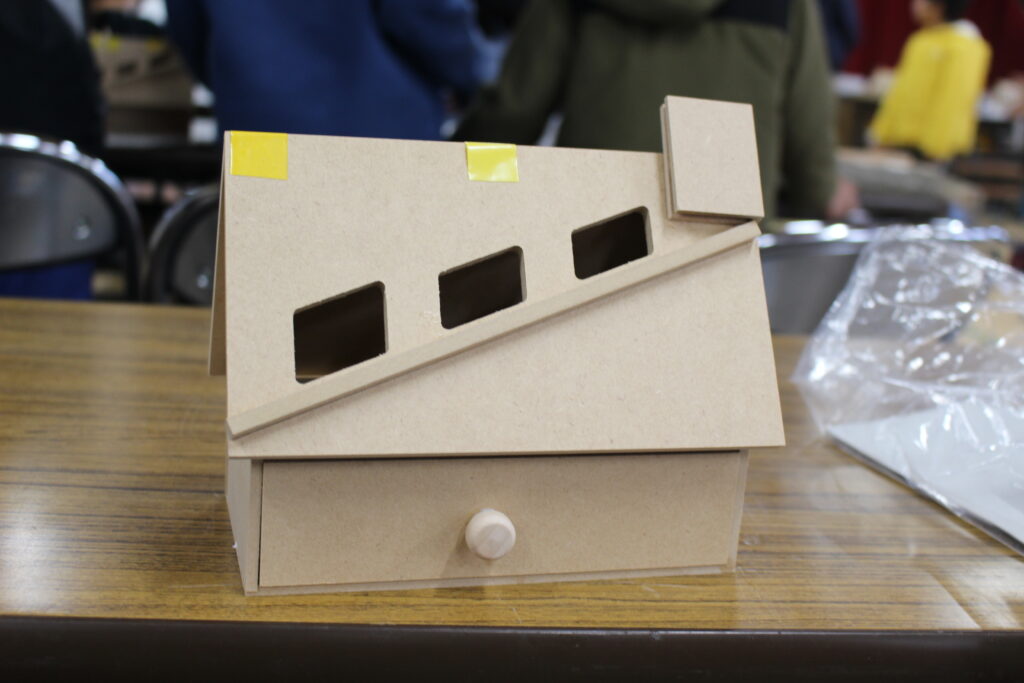 もちつきの後は、工作タイム。貯金箱にもなる「ちょっ金ハウス」づくりに取り組み、パーツを組み立てながら、自分だけのオリジナル作品が完成!できあがった家に思わず誇らしげな笑顔を見せる子どもたちが印象的でした。