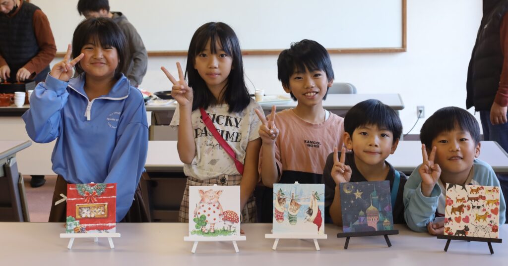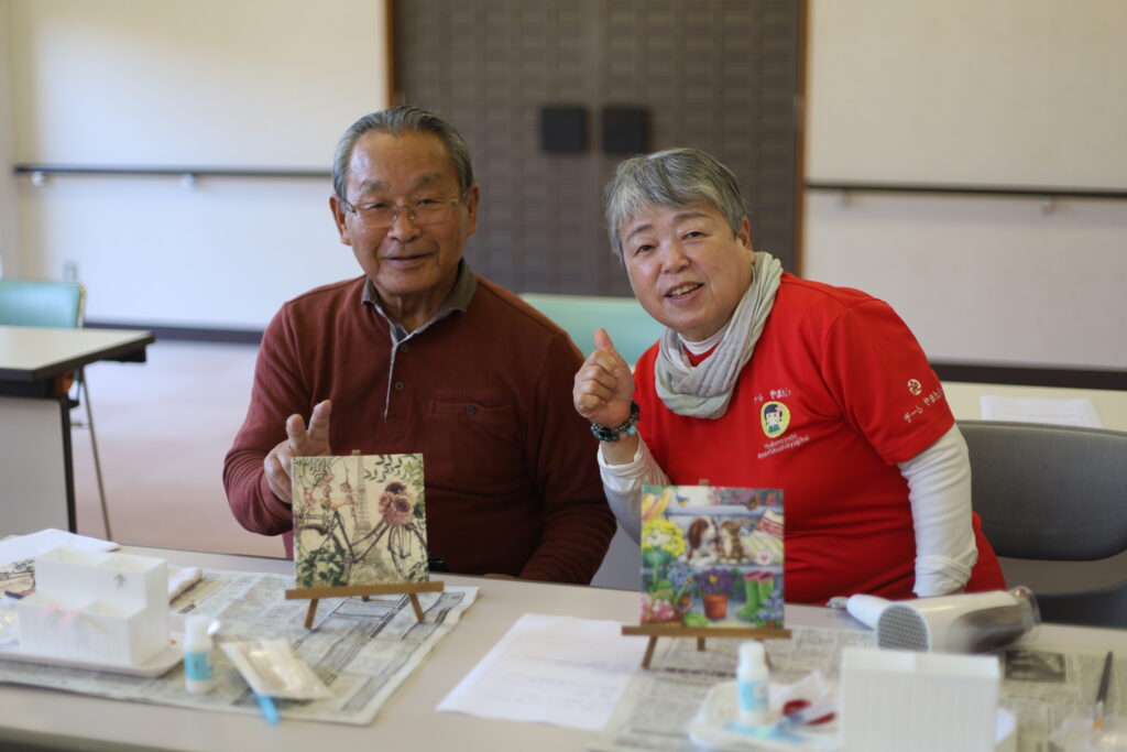 「デコパージュ体験」では、参加者が好きな絵柄を選び、思い思いに工夫を凝らしながら作品づくりを楽しみました。完成した作品を手にした参加者からは、「楽しかった」「また参加したい」などの声が聞かれました。